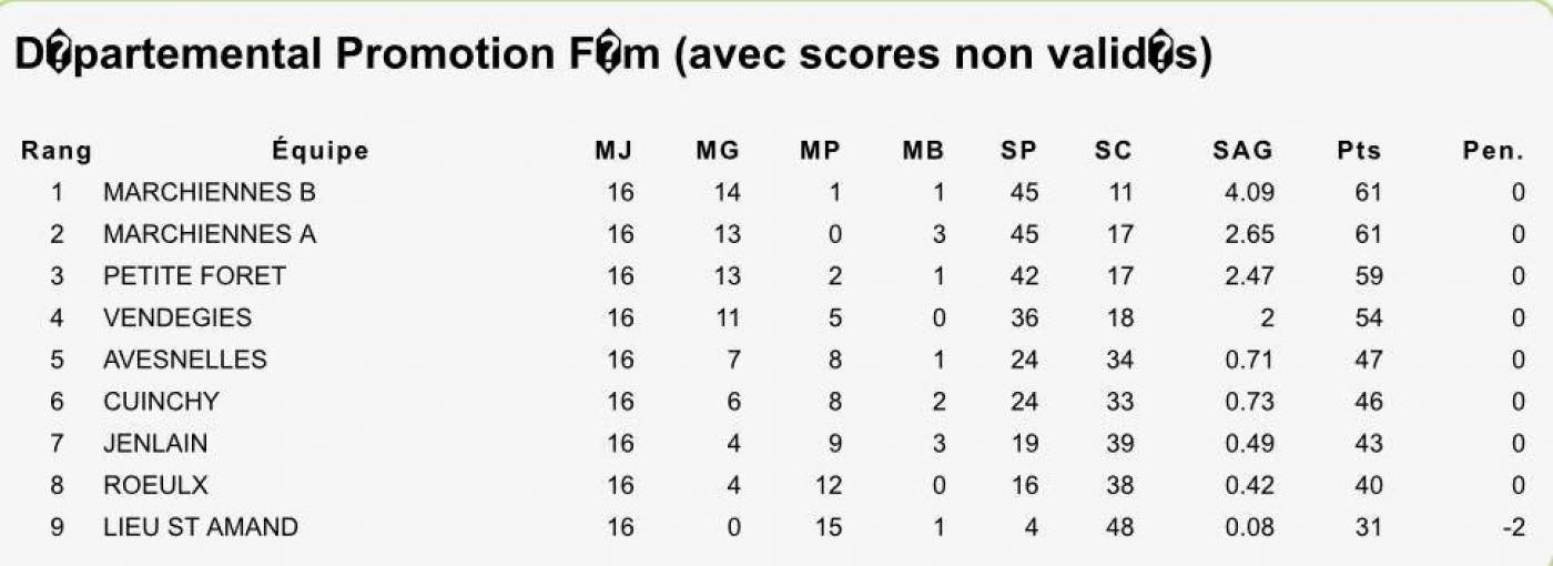 Nos filles terminent à la 3e place du classement derrière Marchiennes B et Marchiennes A.